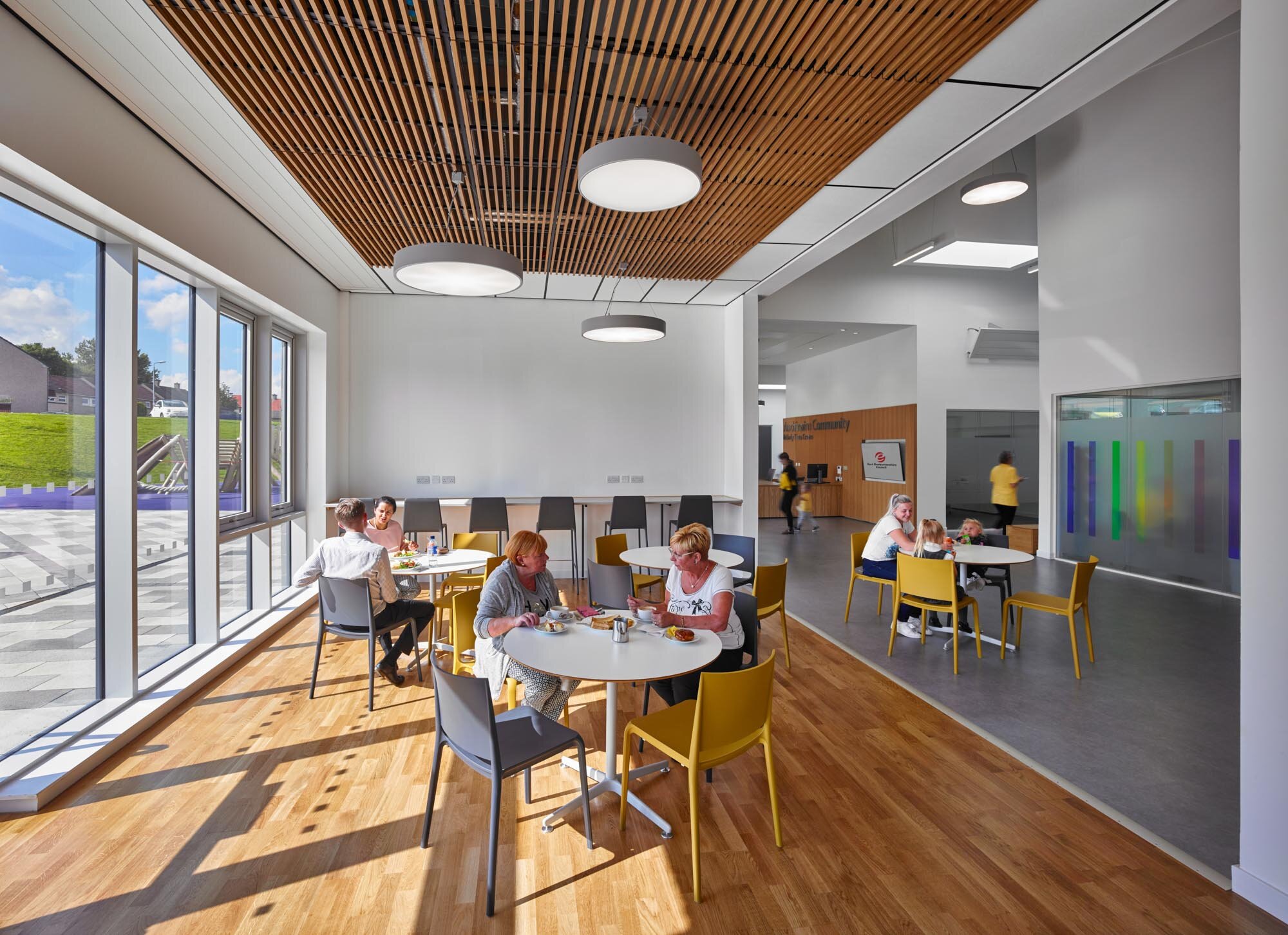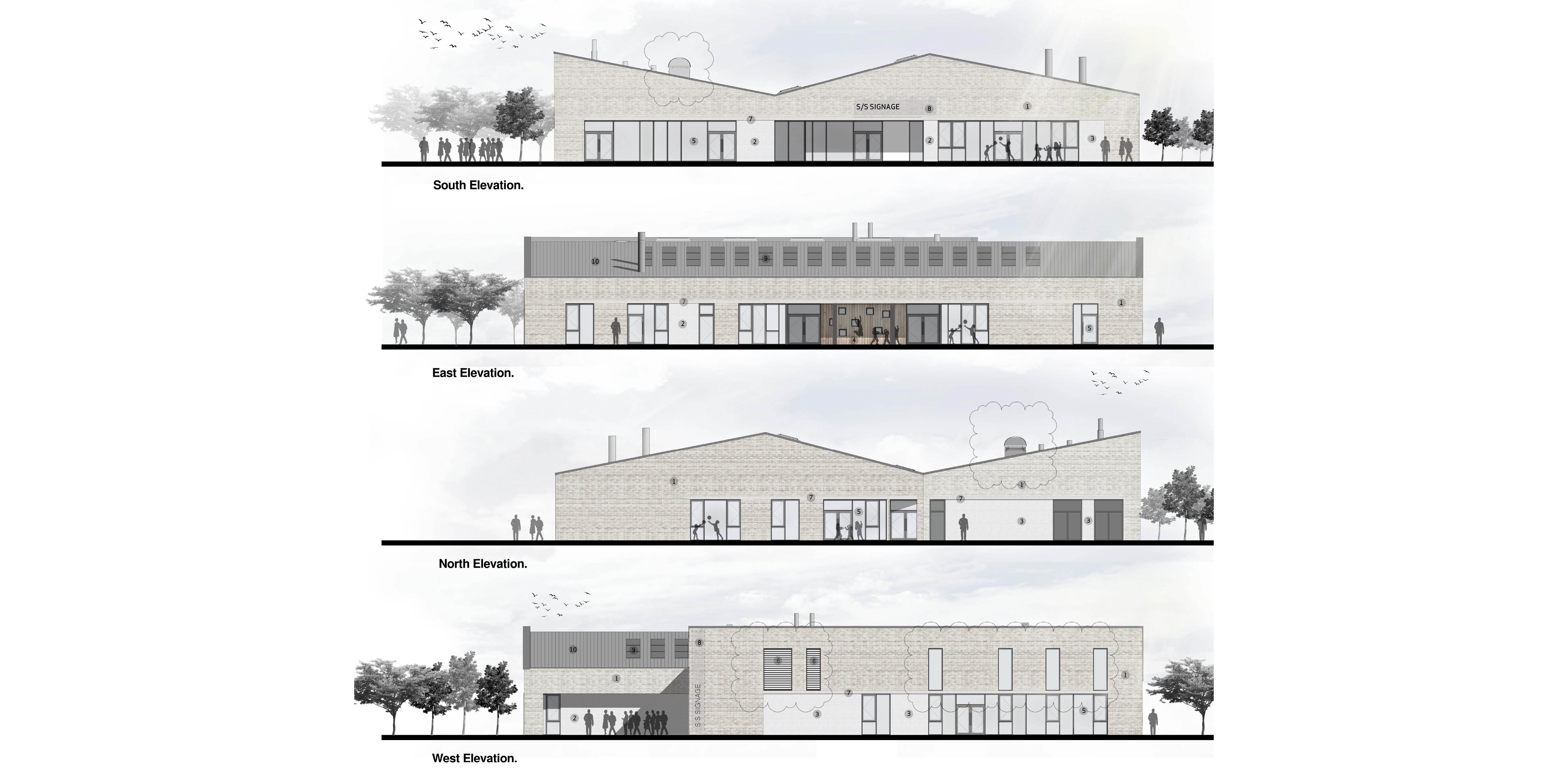 The nursery and community centre has become a central part of community life in the area. The building form is defined by pitched roof volumes which address the street and public plaza space and create a building of domestic scale that is approachable and unintimidating. The proposed building utilises a limited palette of high quality, durable and robust materials, and is designed to present a sophisticated, refined and appropriate form within this area of Auchinairn.